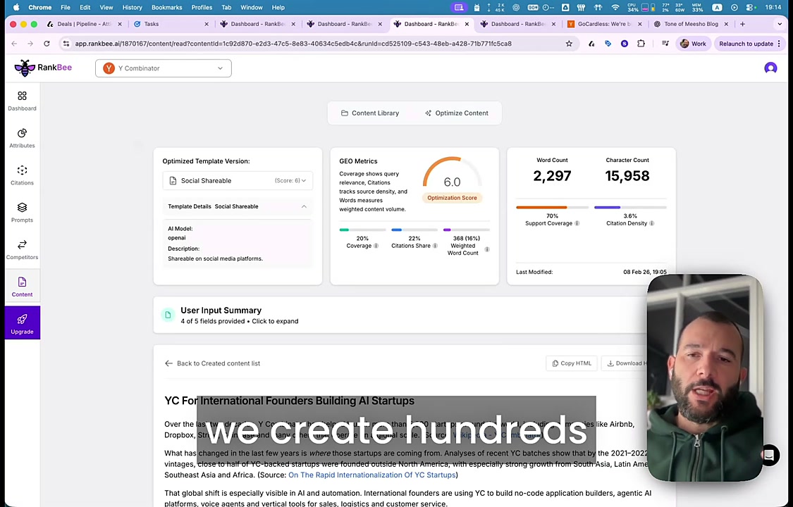 - Allow the AI to run its analysis. The system will evaluate your content against competitors and generate optimized versions.