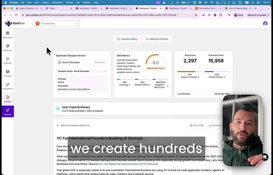 - w/ Rankbee: The optimization score of the new content generated by Rankbee.ai. This score indicates how well the content is optimized for AI search.