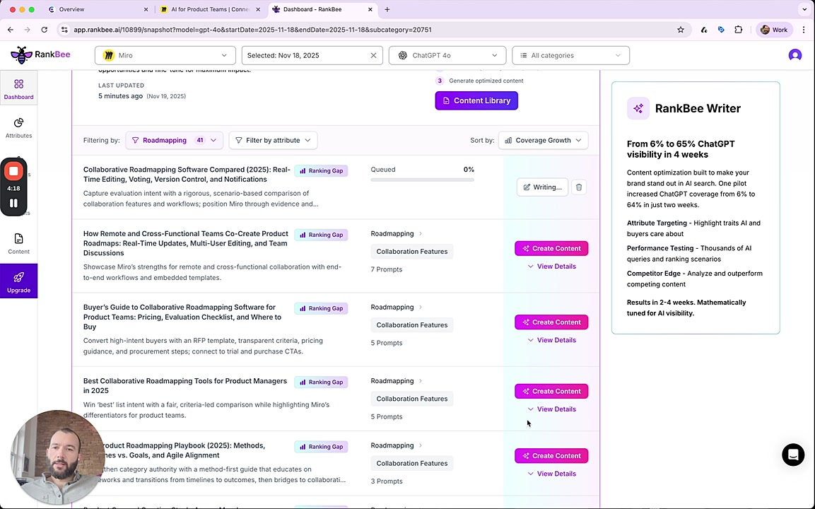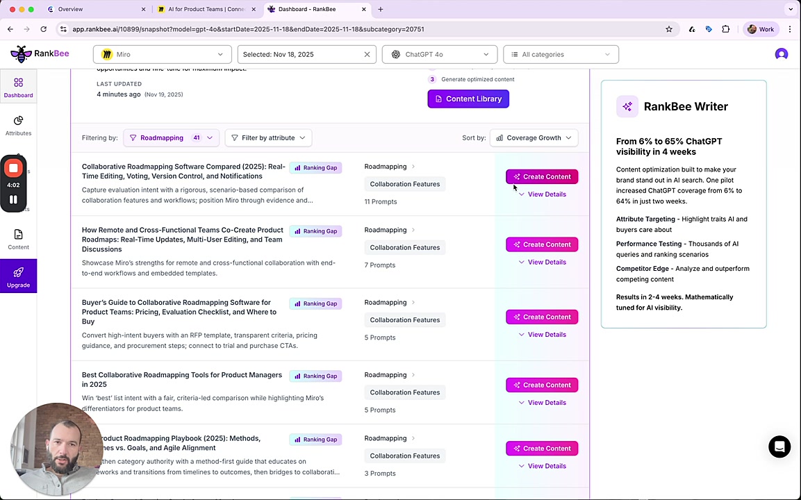 This article details how to set up and configure the AI-powered content generator. By specifying the page type, target audience (ICP), and brand voice, you can generate highly relevant and on-brand content directly from your recommendations, saving time and improving content quality.